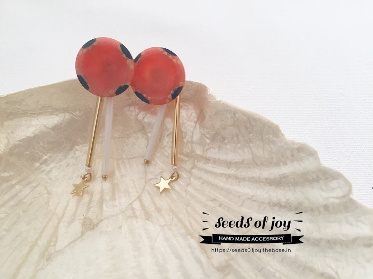 2way 春色 ヴィンテージボタンと星のチャームのピアス